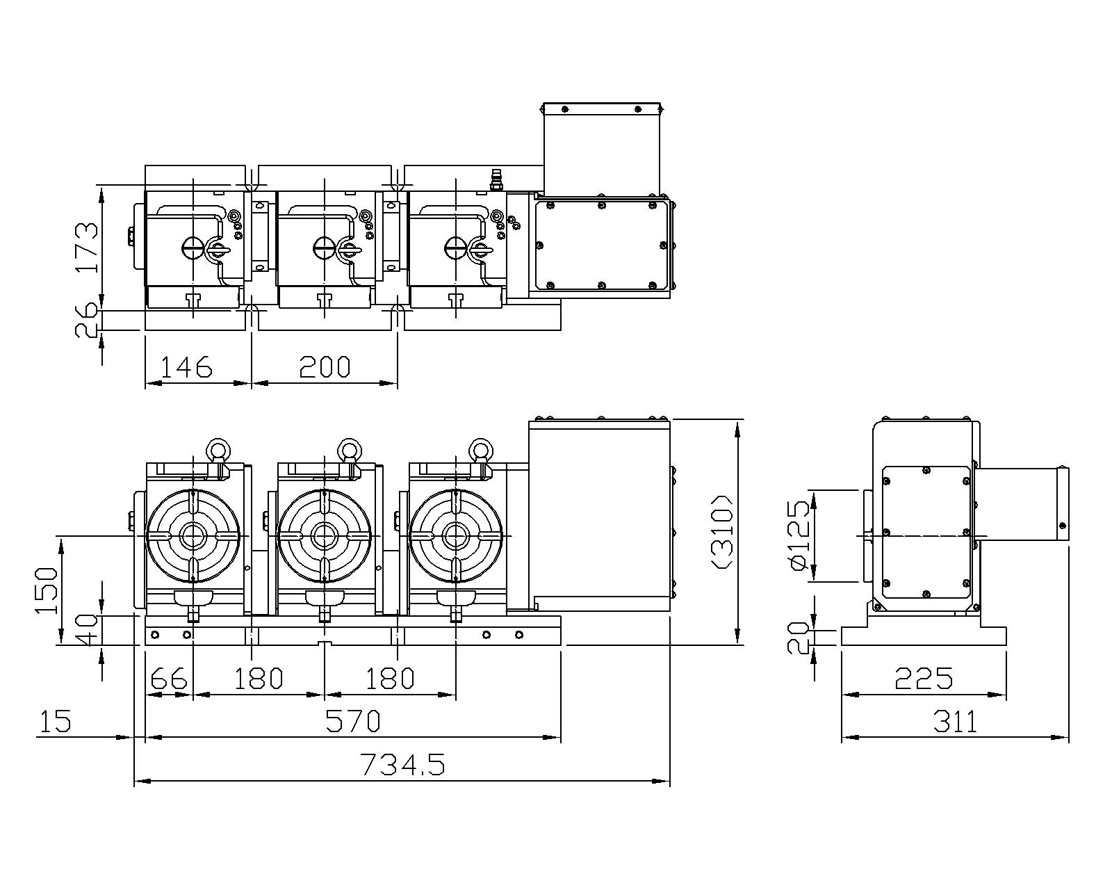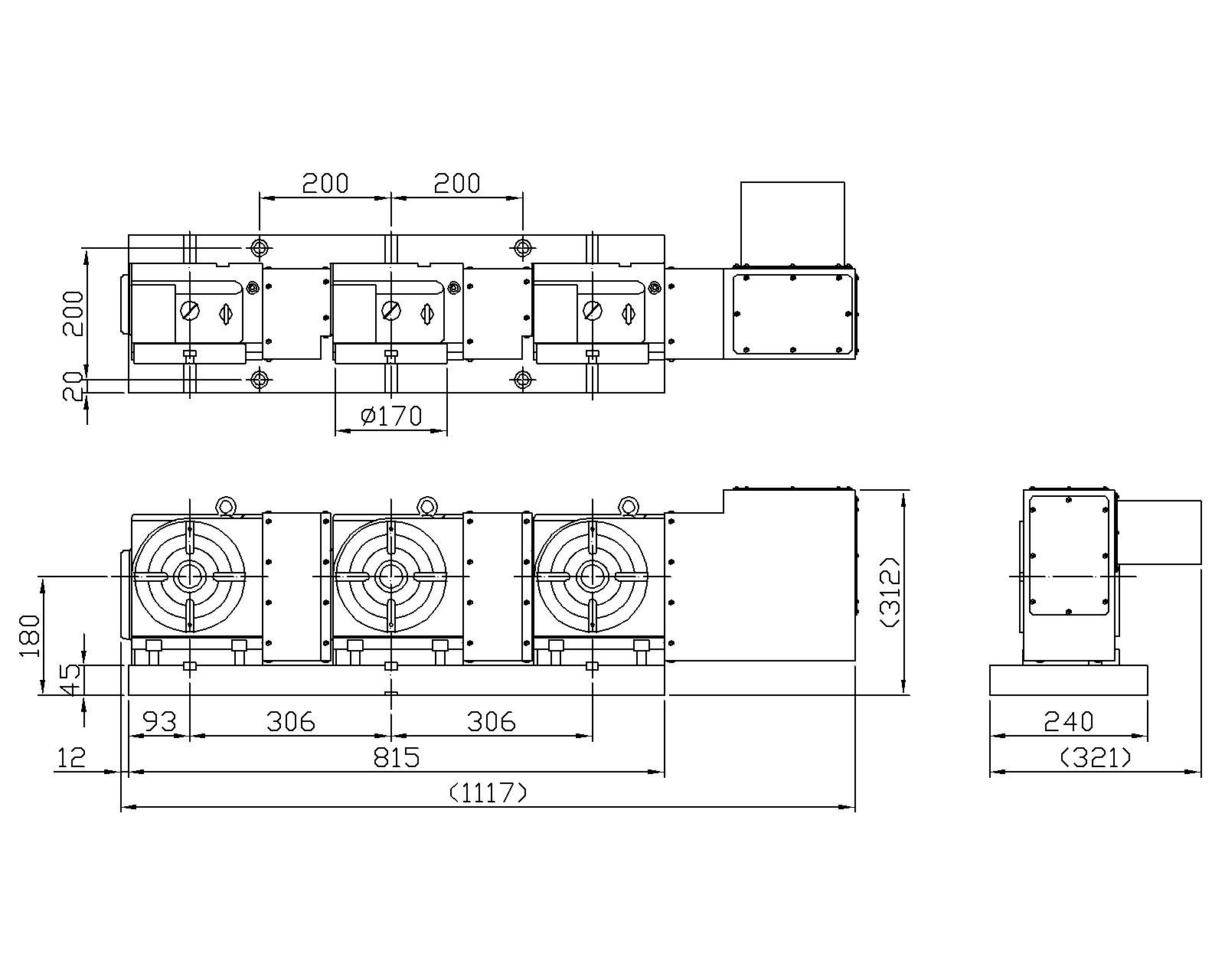 Note:MRNC-255V-2W hydraulic synchronized double-head CNC rotary table is available.Please contact us for drawing if necessity.
